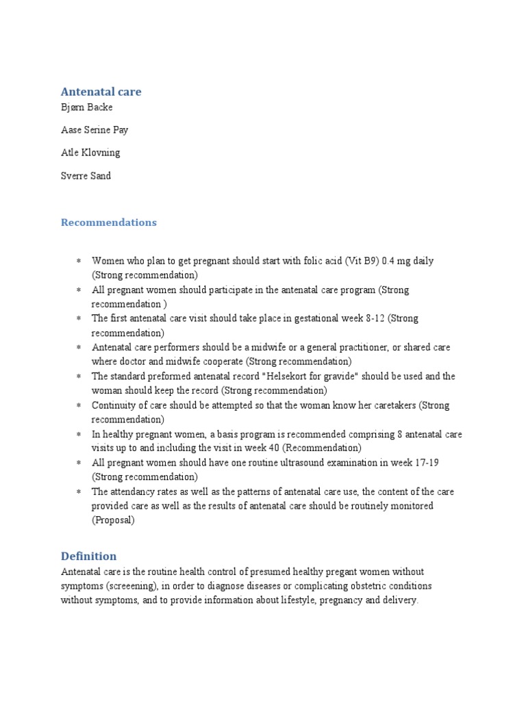 1 NGF Obst Antenatal care Backe.pdf | Obstetrics | Pregnancy