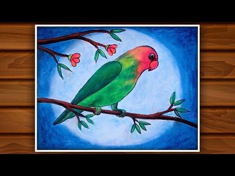 Beautiful Nature Drawing with Beautiful Parrot sitting on tree / Nature drawing painting - YouTube