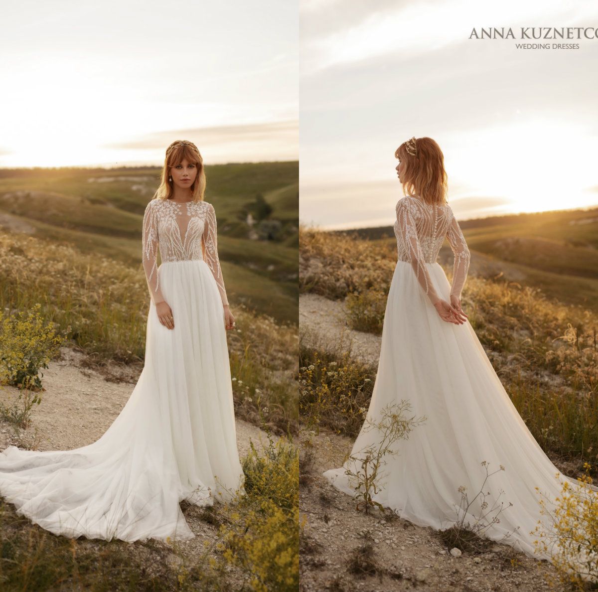 Discount 2021 Lace Wedding Dresses Long Sleeves Appliques Bridal Gowns Custom Made Button Back Sweep Train A Line Wedding Dress Robe De Mariee Dresses For Wedding Kate Middleton Wedding Dress From Newdeve